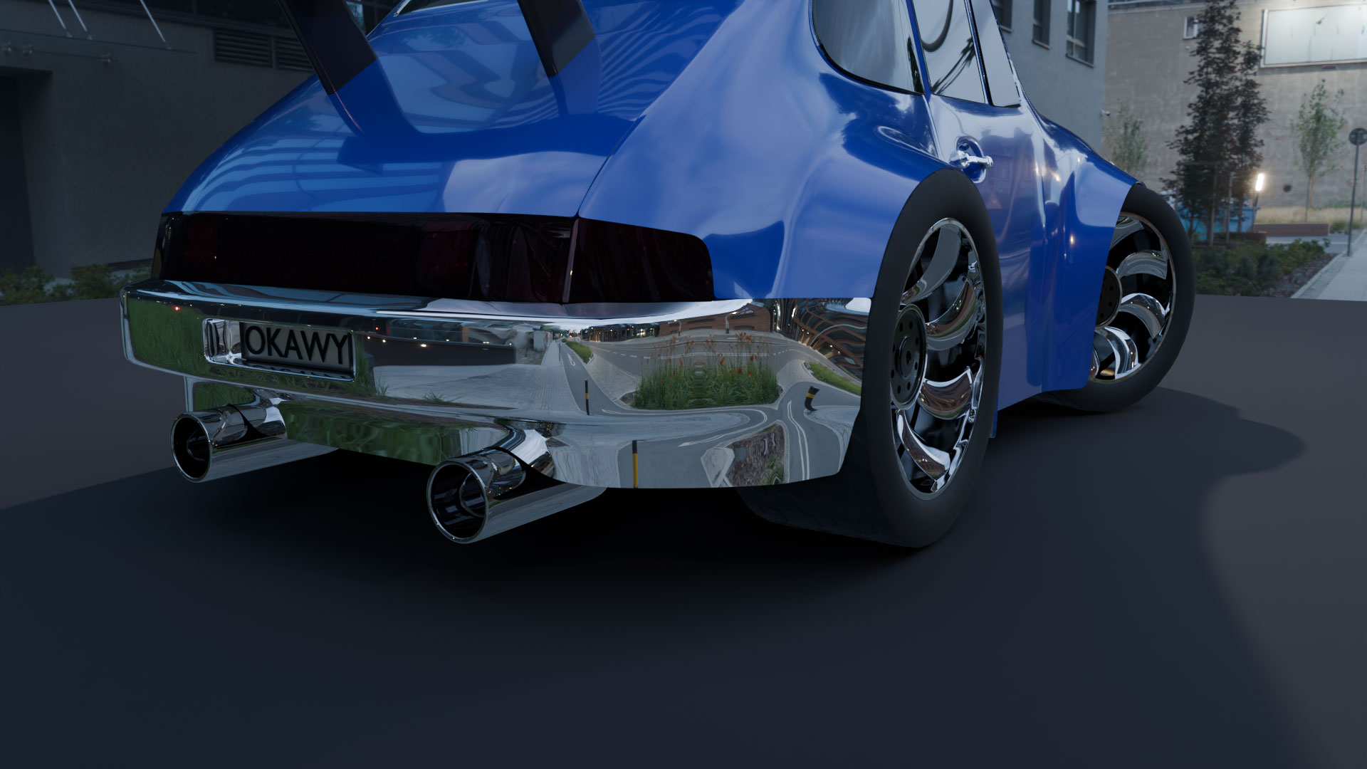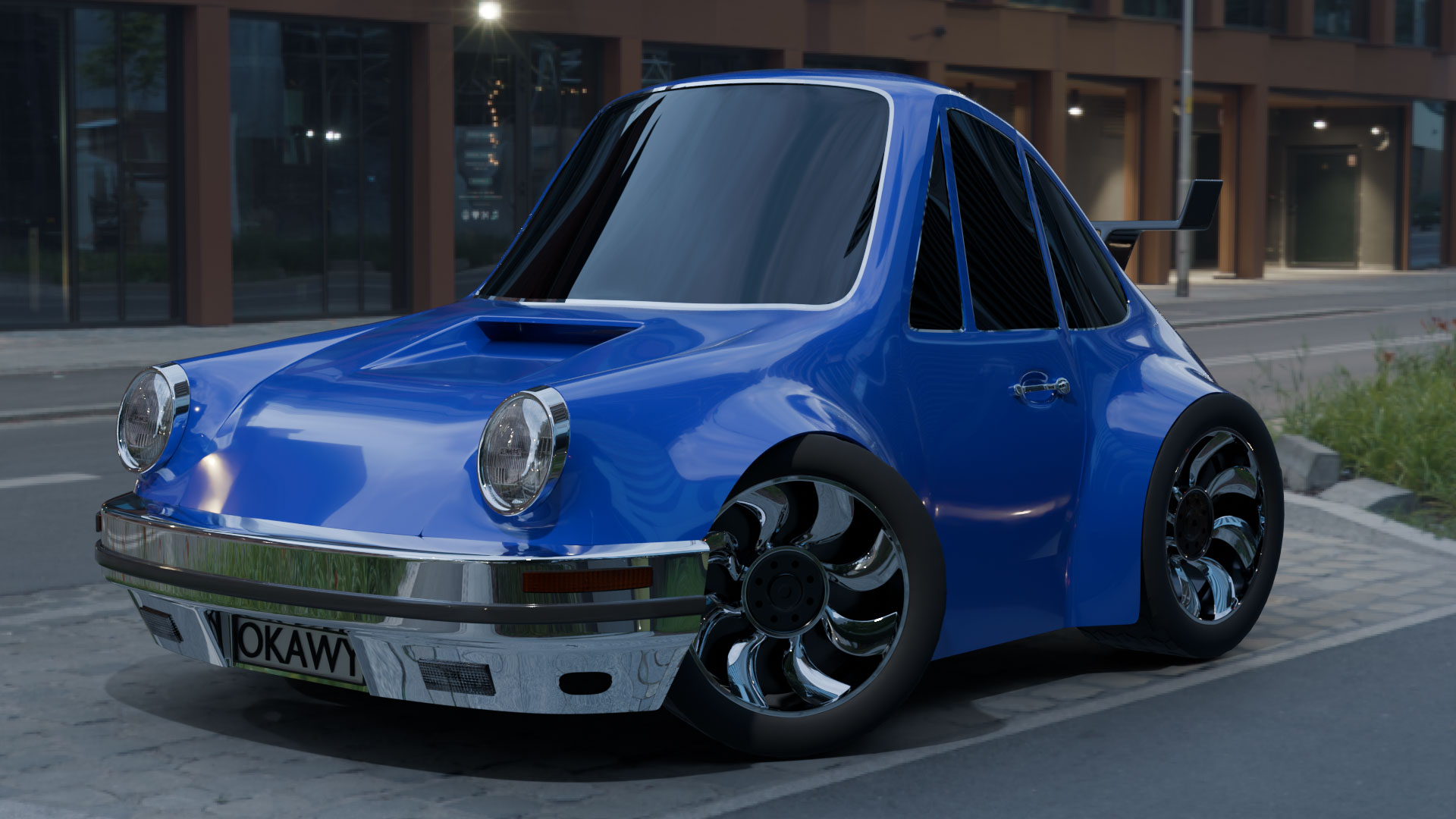 Realistic render of a stylized 3D car inspired by classic sports cars.